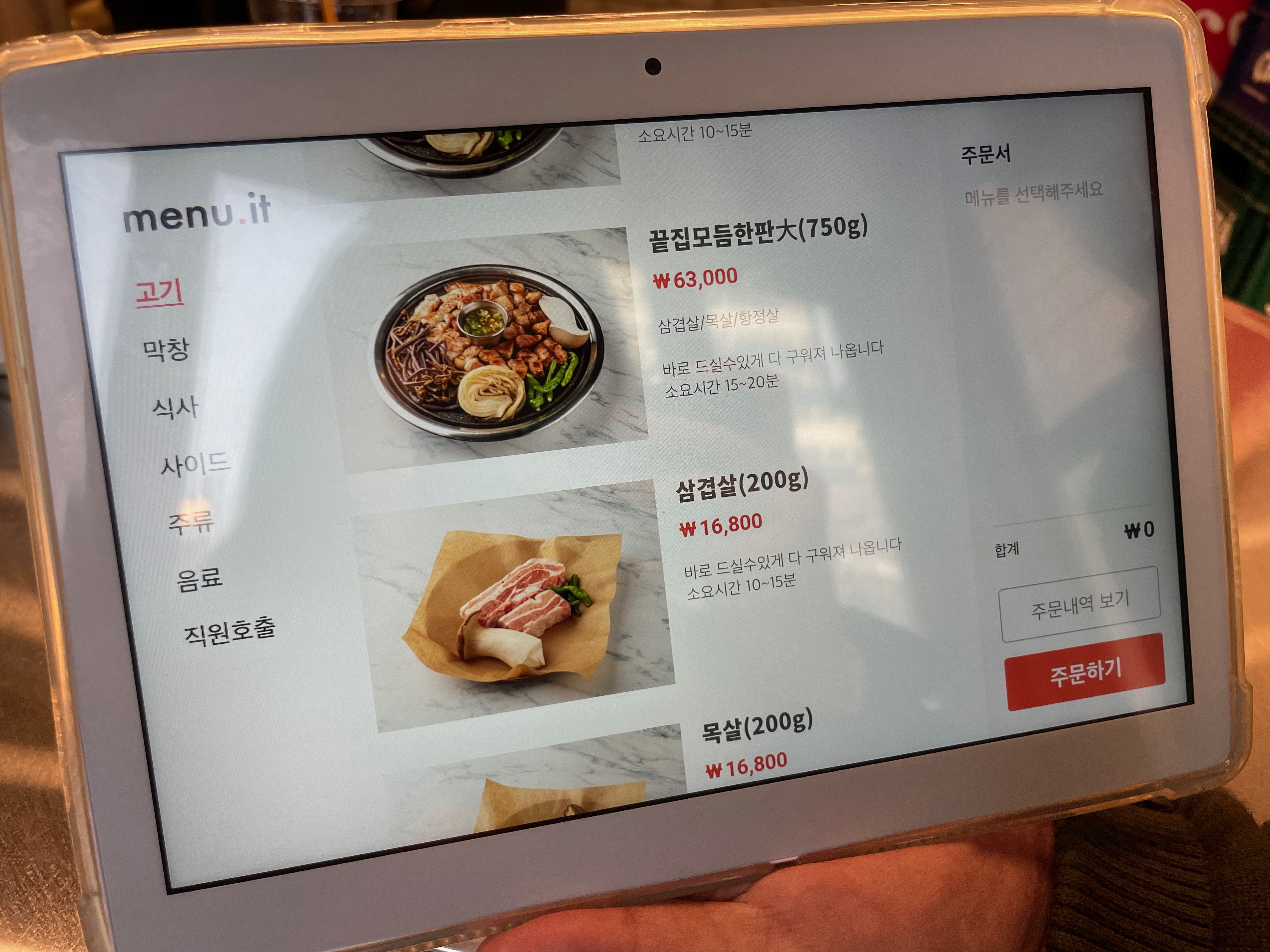 추가로 마음에 드는 부위 주문하면 되는데