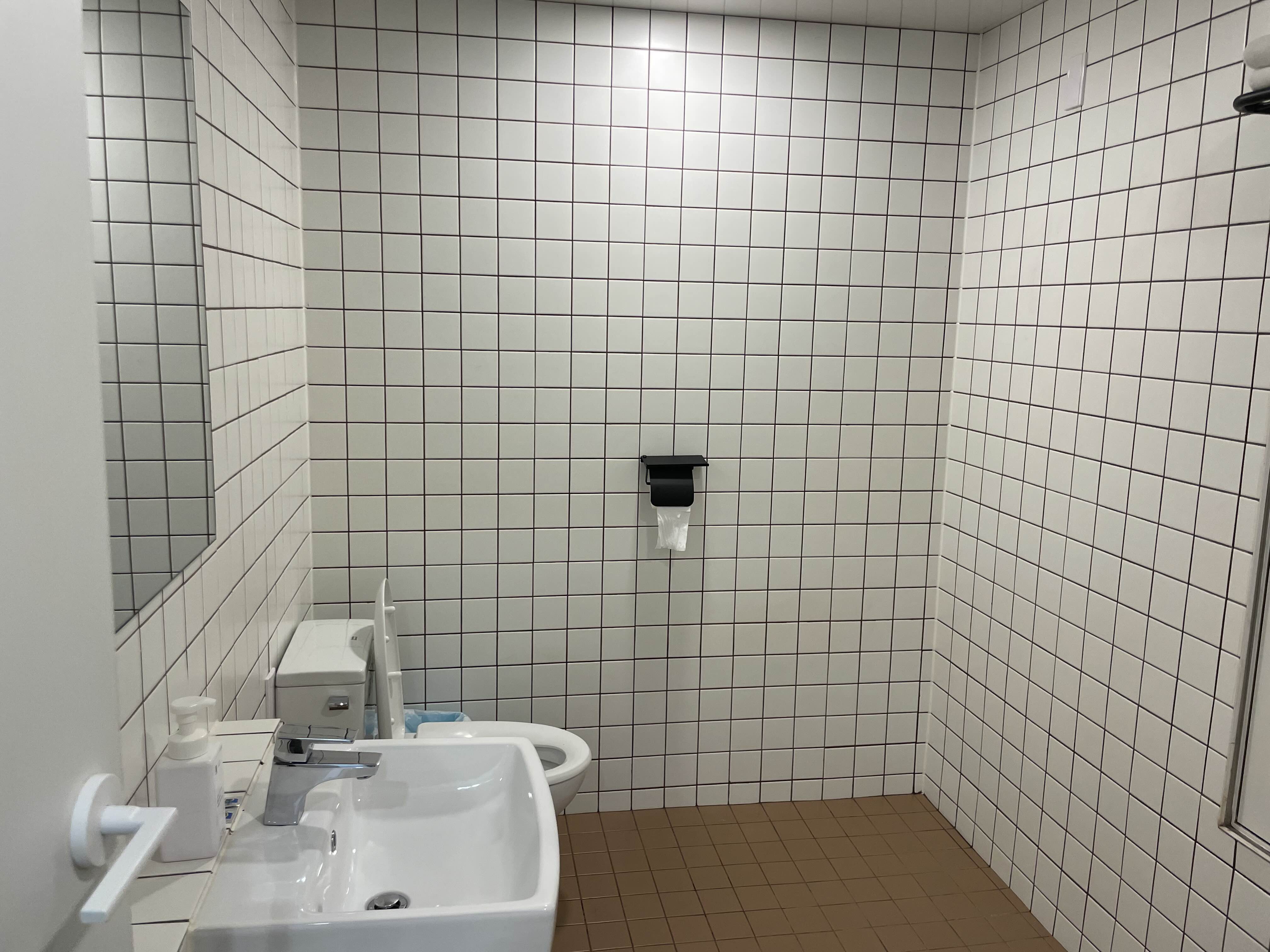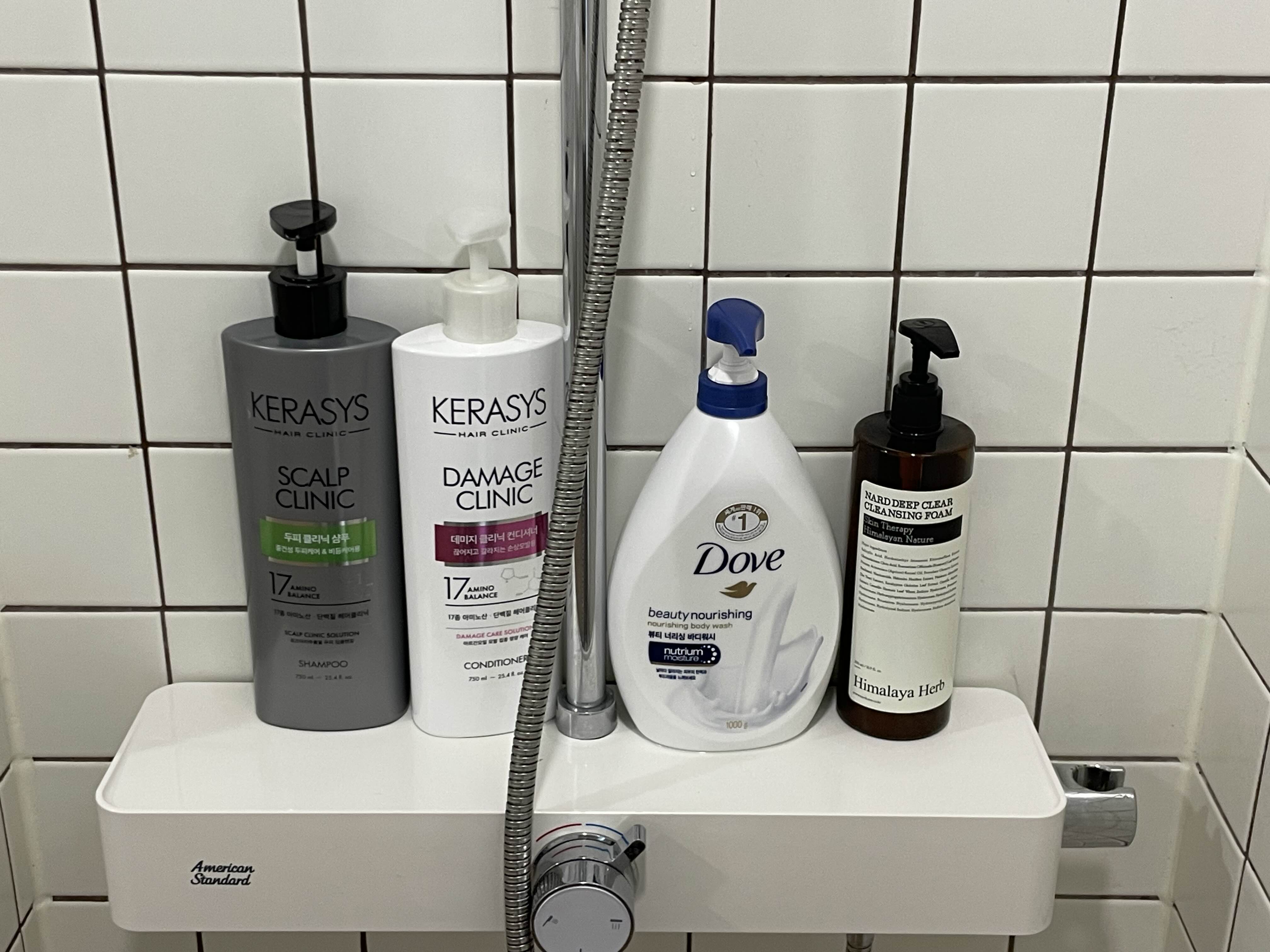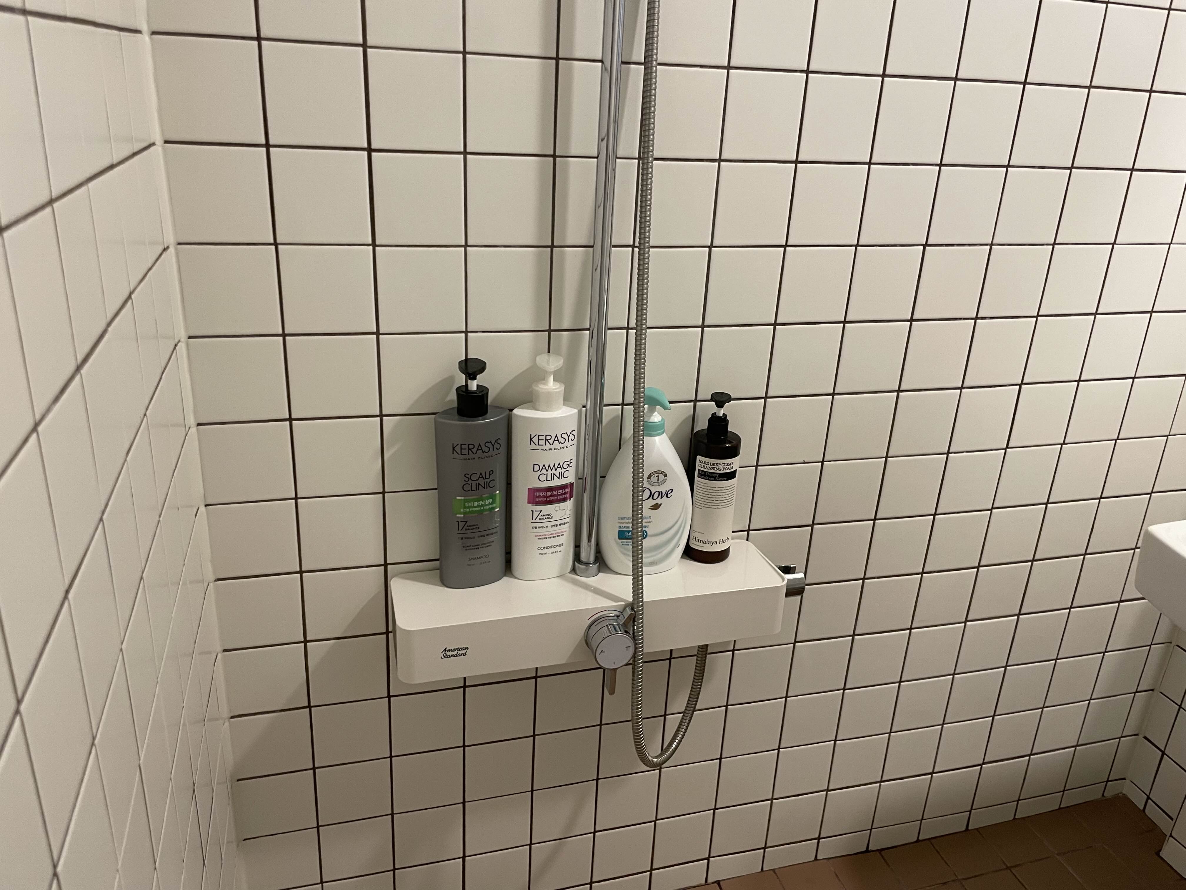 화장실 내부에는 샴푸, 린스, 바디워시, 폼 클렌징 이렇게 구비되어 있어요